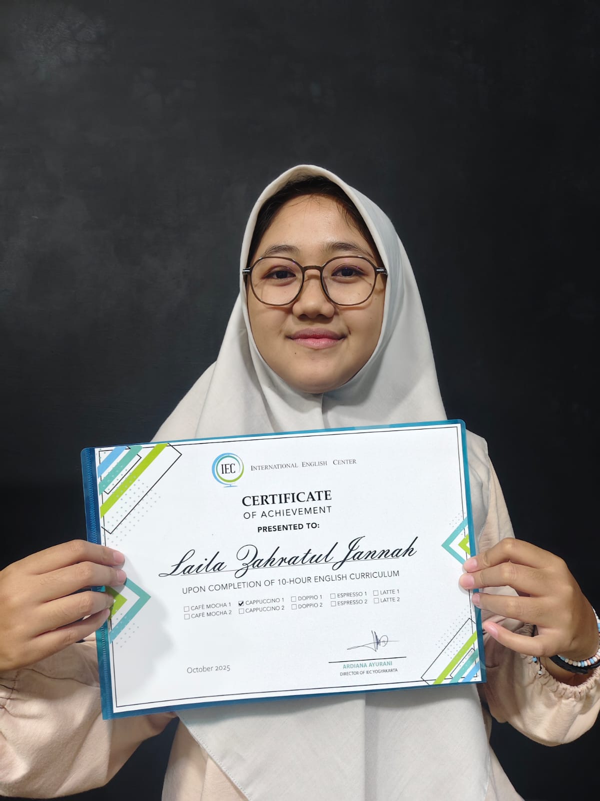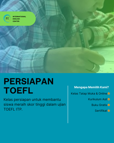 "Saya sangat puas belajar TOEFL International English Course (IEC)! materinya disampaikan dengan cara yang jelas, mudah dipahami, dan sangat relevan untuk kebutuhan sehari-hari. Pengajarnya friendly, sabar, dan selalu memberikan feedback yang membangun sehingga kemampuan saya meningkat pesat. Terimakasih IEC."