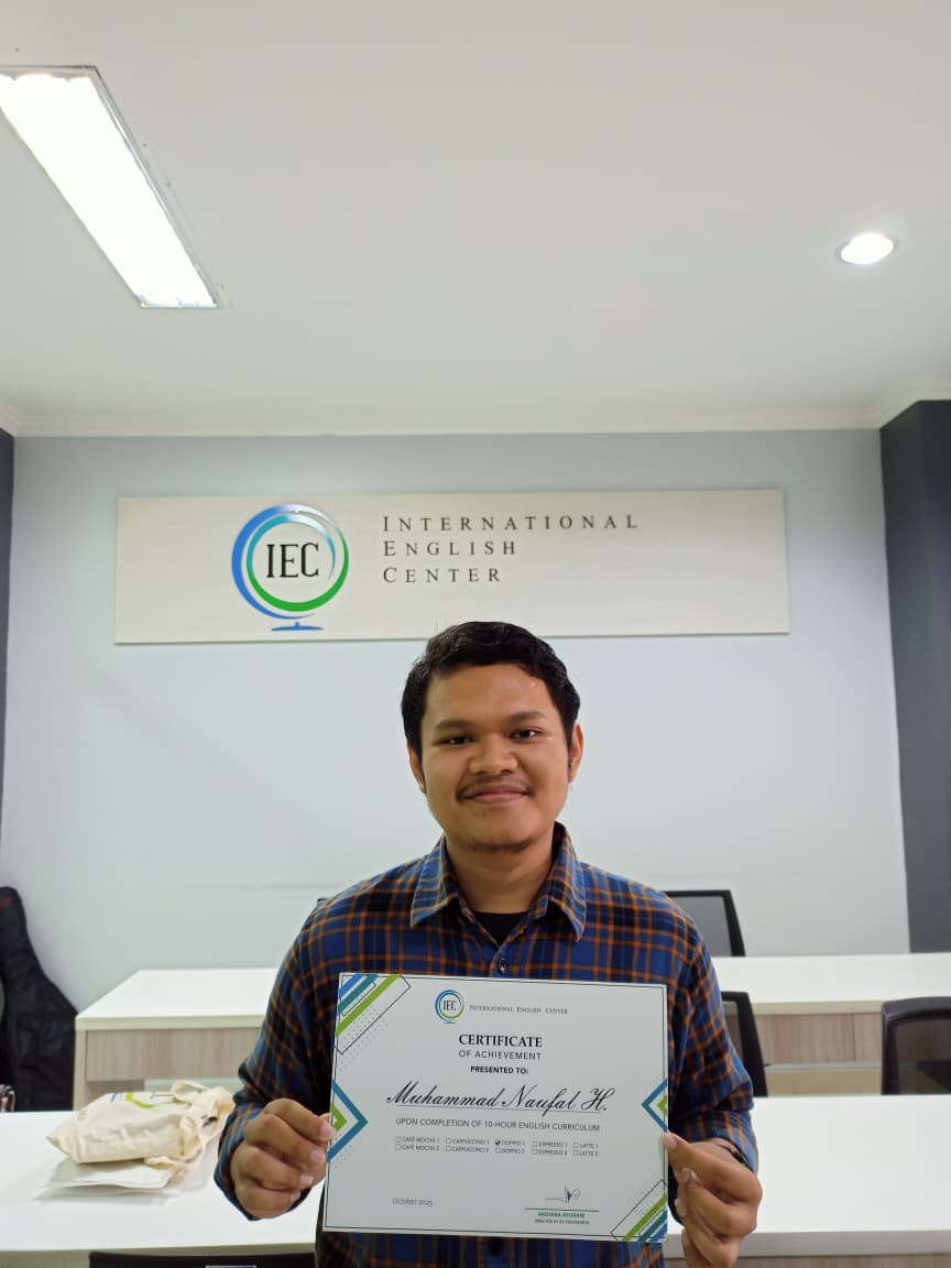 "Modulnya yang mudah dipahami dan sangat interaktif, ruangan yang nyaman buat pembelajaran. Mentor yang interaktif, ramah, pas banget buat yang mau belajar bahasa inggris dari 0 di IEC."