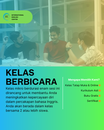 "Program IEC menonjol karena menawarkan pengalaman belajar yang Efektif, Efisien, dan Menyenangkan (EEE), jauh dari teori kaku, dengan fokus utama pada praktik langsung melalui diskusi dan skenario peran, bahkan berpotensi berinteraksi dengan penutur asli. Selain itu, materi pembelajarannya selalu aktual dan relevan, mencakup topik dari budaya pop hingga tren bisnis global, memastikan peserta tidak hanya menguasai tata bahasa, tetapi juga mampu melakukan percakapan yang bermakna."