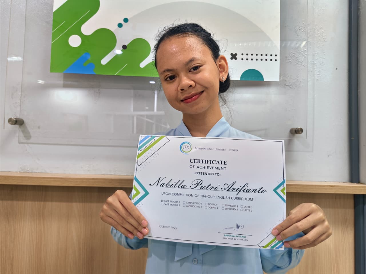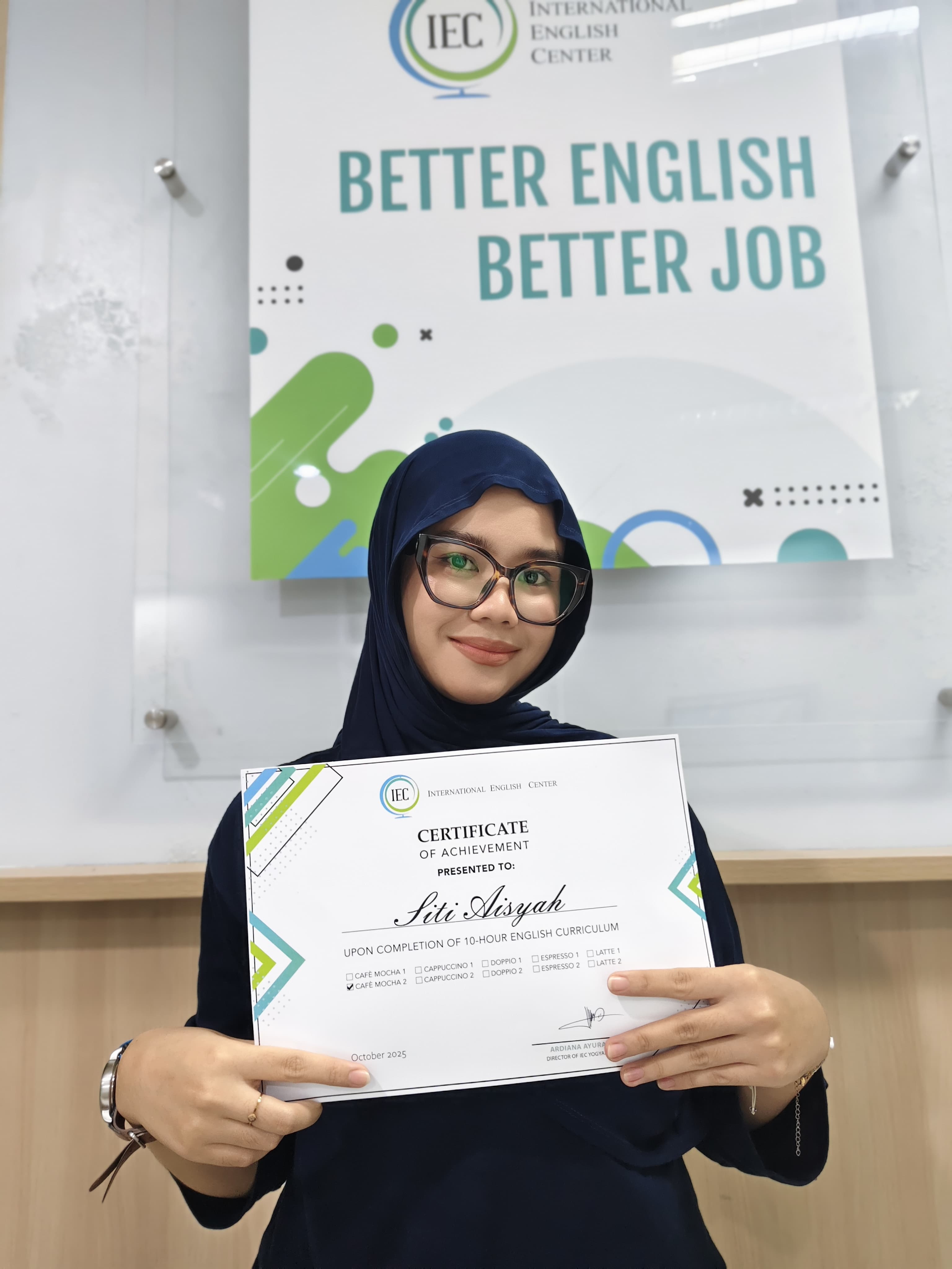 "Modulnya yang mudah dipahami dan sangat interaktif, ruangan yang nyaman buat pembelajaran. Mentor yang interaktif, ramah, pas banget buat yang mau belajar bahasa inggris dari 0 di IEC."